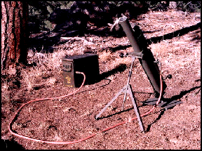 This puppy here is my dream. I wish so badly that I could get one. However, with a price tag of $1209, and at $60 per case of five shells, it is way beyond my personal income level. But, I would be glad to accept donations toward my team's goal of someday owning one of these, e-mail us and we'll send you the appropriate info. Anyways, I'll describe it. This product is made by Tippman Pneumatics. It uses CO2 to fire a 20 oz. paint projectile up to about 150 yards away. The paint projectile has a 30' to 50' spread zone and is accurate within 20' at 100 yards.
